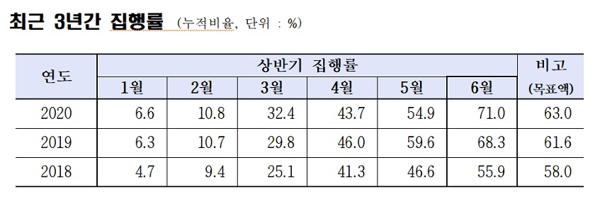 이는 2020년 조기집행 대상 사업(2조 9,324억원)의 71.0%에 해당하는 예산을 신속 집행한 것으로, 당초 조기 집행 목표(1조 8,465억원)를 112.8% 초과 달성한 것이다. 사업별로는 공·사립 학교 운영비 6,738억원, 무상급식 및 코로나19 위기 대응 식재료 지원으로 2,855억원, 맞춤형 복지비로 744억원을 집행했다.