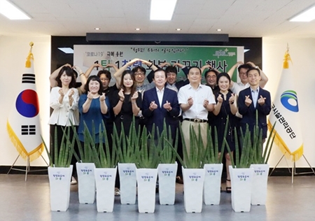 청렴 푸르미 화분이라고 이름 붙인 화초 가꾸기 행사는 코로나19로 어려움을 겪고 있는 화훼 농가와 지역 소상공인을 응원하고 직원들의 청렴의식을 다지기 위해 마련됐다. 청렴 화분을 각 부서에 놓고 ‘깨끗한 공직사회를 만드는 데 앞장서자’는 의지를 다지는 한편 청렴한 직장 문화 조성에 앞장서기를 다짐했다. 김윤기 이사장은 7일 오후 “이번 행사가 화훼농가에도 조금이나마 보탬이 되길 바란다”며 “식물을 가꾸는 정성을 담아 지속적인 청렴 실천 의지를 제고 함으로써 청렴의 가치를 되새기게 되는 계기가 되길 바란다”고 말했다.