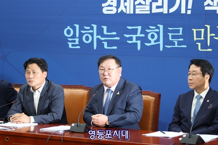김 원내대표의 이러한 제안은 행정수도 완성에 대한 사회적 논의를 본격적으로 추진하기 위해서다. 김태년 원내대표는 이에 앞서 20일 국회 원내 교섭단체 연설에서 “국가균형발전을 위한 행정수도 완성”을 제안한 바 있다. 그러나 미래통합당 김종인 비대위원장은 “헌법재판소 판결문에 의해 이미 결정됐다. 이제 와서 뒤집을 수 없는 것 아닌가”라고 밝혀 행정수도 이전에 대해 반대한다는 뜻을 분명하게 밝혔다. 김태년 원내대표는 “미래통합당의 반응은 아쉽다”라면서 “미래통합당은 행정수도 이전, 행정수도 완성 자체를 반대하는 것인지 아니면 찬성은 하지만 헌재의 위헌결정 때문에 동의하지 못하겠다. 또는 어렵겠다고 하는 것인지 입장을 밝혀 달라”고 강하게 압박했다. 김 원내대표는 “이것은 여야의 합의에 의한 국회의 결단이 중요하다”라며 “2020년 대한민국의 현실에서 수도권 과밀해소와 국가균형발전을 위한 차원에서 행정수도 완성의 필요성을 진지하게 검토해주시기 바란다”라고 밝히고 “행정수도 완성은 여야가 대한민국의 미래를 위해 다시 논의해야 할 국가 중대사이다”는 점을 강조했다. 야당이 추미애 법무부 장관에 대한 탄핵소추안을 제출했다. 이와 관련해 김태년 원내대표는 “지난 1월에 폐기된 안건을 다시 꺼내든 의도는 분명하다. 검찰개혁을 저지하겠다는 정치공세이고 공수처 이슈를 분산시키려는 정략적 꼼수다”고 직격탄을 날렸다. 김 원내대표는 “생산적 정책경쟁이 아닌 오로지 정쟁을 위한 습관적 탄핵 남발이다”고 주장하고 “법에 따른 지휘권을 정당하게 행사한 법무부 장관에 대한 탄핵소추는 부당하다”며 “추미애 장관의 수사 지휘는 공정한 수사를 보장하기 위한 정당한 권한 행사다”라는 점을 분명히 밝혔다. 조정식 정책위의장은 20일 “김창룡 경찰청장 후보자와 한상혁 방송통신위원장의 청문회를 마치고 청문보고서가 채택됐다”고 밝히고 “인사청문회는 우리 국회가 국민의 눈과 귀가 되어 후보자의 역량과 자질을 검증하고 정책적 비전과 철학을 확인하는 자리다”고 강조했다. 조 정책위의장은 이어 “그러나 여전히 미래통합당 일각에서 인사청문회의 본질에서 벗어나 근거 없는 폭로와 의혹 부풀리기를 일삼고 있다”며 “특히 박지원 국정원장 후보자를 향해 적과 내통하는 사람이라는 매우 부적절하고 어처구니없는 막말을 퍼붓고 있어 대단히 안타깝고 유감스럽다”고 밝혔다. 조정식 정책위의장은 “여야 간 입장이 다르다 해도 정치적 금도가 있다”며 “야당 대표와 대통령 비서실장, 4선 국회의원을 역임하고 평생을 남북관계 정상화에 앞장섰던 후보자에게 어떻게 간첩 딱지를 붙일 수 있는가”라고 반문했다. 조 정책위의장은 “철이 지나도 한참 지난 빨간색 덧칠에 대한 유혹을 이제는 버려야 한다”고 강조하고 “미래통합당의 막말을 즉각 철회하고 후보자와 국민 앞에 사죄해야 한다”고 주장했다. 조정식 정책위의장은 “인사청문회가 불미스러운 막말과 아니면 말고 식 폭로로 점철되는 일이 없도록 해야 한다”며 “미래통합당의 통절한 반성”을 촉구했다.