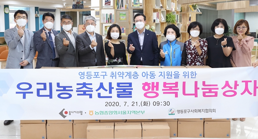 형편 어려운 아동‧청소년 가정에 전달 영등포구(구청장 채현일)가 한 기업의 후원을 받아 농협 서울지역본부에서 구성한 행복 나눔 상자 60박스를 지역 내 거주하는 저소득 아동‧청소년 가정에 지원한다고 밝혔다.