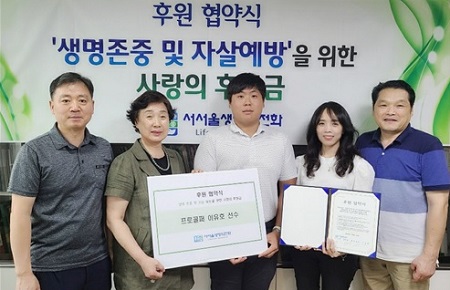 생명의 절대적 존엄성과 가치를 기초로 위기에 처한 이웃들이 양질의 복지서비스를 받도록 우수한 자원봉사자를 발굴하고 전문화해 위기 예방 교육프로그램을 진행하고 있는 서서울생명의전화가 프로골프 이유호 선수와 생명존중 및 자살 예방을 위한 사랑의 후원금 협약식을 체결했다.