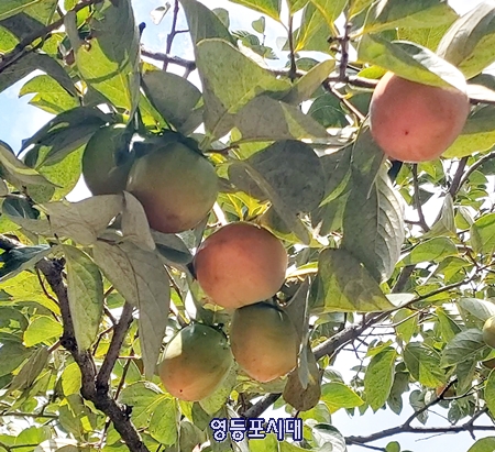 변치 않을 것들이 있다 들판에 벼가 누렇게 익어가고 뒤꼍 감나무와 대추나무 열매가 붉게 익어가야 추석이다. 공원 사무소 앞 감나무도 추석이 다가왔음을 모를 리 없다 감이 풍성하게 익어간다 사정이야 어떻든 풍성한 한가위 되시기를.