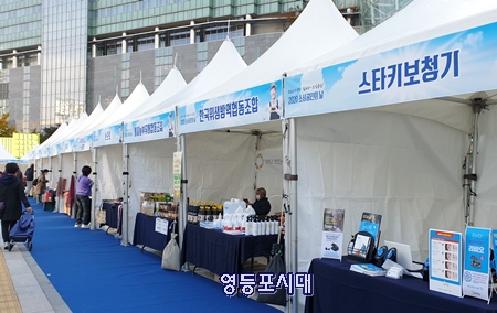 영등포구는 5일 타임스퀘어 광장에서 중•소상공인 우수제품 홍보 및 판매와 소공인 금속팽이 전시•기술경진대회를 개최했다. 중•소상공인 우수제품 홍보와 판매, 소공인 금속팽이 전시 및 경진대회, 문래 기계 금속 집적지 사진전이 함께 진행된 이번 행사에는 소상공인연합회, 소기업 소상공인회, 소공인협회 회원과 관계자 등 40여 명이 참석했다. 이날 스타키보청기(대표 강용준), 참사랑마트(대표 박성규), 사회적협동조합 노느메기(대표 박상호), 서울신용보증재단 영등포지점 등 생활용품과 농산물, 식품 건어물 등 총 37개 중·소상공업체가 참가해 홍보부스를 운영하며, 제품 전시와 함께 판매 활동을 벌였다. 소공인 금속팽이 전시•기술경진대회는 당일 선착순으로 접수해 대진표를 작성하고 오후 2시부터 3시 30분까지 1시간 30분 동안 진행해 1등에게 30만 원 상당의 등산용 스틱 남•여 세트를 부상으로 주어 눈길을 끌었다. 중•소상공인 우수제품 판매전에 참여한 스타보청기 강용준 대표는 11월 6일 오전 본지와의 통화에서 “코로나19로 너나없이 매출이 많이 줄었을 것으로 생각한다. 스타보청기도 역시 그렇다”라면서 “이런 어려운 시기에 용기를 준 영등포구와 관심을 준 영등포 구민에게 감사드린다”라고 밝혔다. 강 대표는 “구민의 많은 협조 속에 이루어진 하나의 축제였다고 생각한다”라며 “즐겁고 행복한 마음으로 행사를 잘 마쳤다”라고 덧붙였다. 이번 행사를 주최한 영등포구 관계자는 “코로나19로 어려운 시간을 겪고 있는 소상공인들에게 든든한 희망의 버팀목이 될 수 있도록 다양한 지원책을 지속해서 추진해나가겠다”라고 전했다.