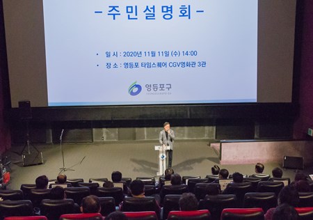 영등포구(구청장 채현일)가 11일 오후 영등포 타임스퀘어 내 한 영화관에서 개최한 ‘영등포 도심 역세권 재개발사업’에 대한 주민설명회에서 발표된 계획안에 따르면 영등포역 앞이 주거와 업무 판매시설이 들어선다. 이날 설명회에는 김영주 국회의원과 구의원, 해당 지역 토지 등 소유자 및 영등포 주민 90여 명이 일정한 거리를 유지하며 착석해 정비계획에 대한 설명을 들었다. 채현일 구청장은 “이번 정비계획의 수립은 영등포역세권이 영등포의 중심이자 랜드마크로 도약하게 되는 핵심사업이다”라며 “구민들의 오랜 숙원사업인 도시 정비 재개발사업을 차질 없이 추진하여, 영등포 제2의 르네상스를 열어가겠다”고 밝혔다.