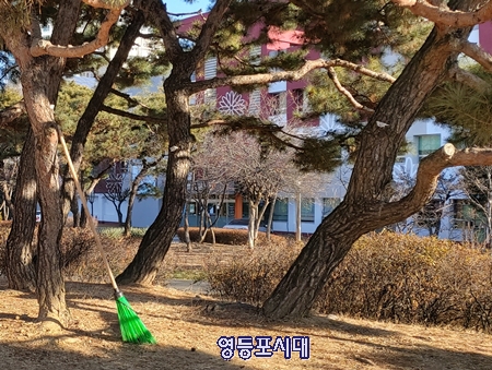 추위를 몰고 와 심술을 부리는 게 분명하다. 어제부터 공원 잔디밭 소나무에 빗자루 하나 걸쳐있다. 언제 온 지는 잘 모르겠다. 혹시 마귀할멈이 빗자루를 잃어버린 것은 아닐까, 치우지를 못하겠다. 날씨가 차다.