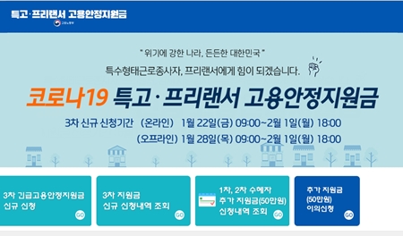고용노동부가 1월 22일(금) 9시부터 2월 1일(월) 오후 6시까지 홈페이지를 통해 ‘3차 긴급고용안정지원금’ 신청을 받는다. 다만 PC로만 접속할 수 있다.