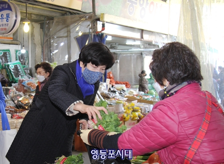 김영주 국회의원은 2월 9일 남동생과 함께 영등포전통시장을 찾아 설 차례상 준비를 위한 장을 보며 상인들의 애로사항과 민원을 함께 듣고 경기침체로 시름에 빠진 상인들을 응원했다.