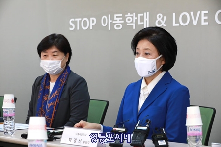 이날 이선영 관장은 “연간 아동학대 건수가 2만 건이 넘지만, 아동보호전문기관은 전국 69곳, 담당 인력 1,200명에 불과해, 아동보호전문기관의 인력 부족 문제가 심각하다”고 토로했다. 이 관장은 이어 “정인이 사건 이후 사례관리를 담당하는 상담원들의 퇴사율이 높아지는 등 현장 근무 여건 개선이 시급하다”고 거듭 호소했다. 박영선 후보는 “아동학대 문제가 더 이상 일어나지 않게 서울시가 책임지겠다”며 “첫 여성 시장이 되어 아동보호 체계를 바꾸고 인프라를 구축하겠다”고 밝혔다. 박 후보는 이어 “현재 피해 아동센터가 4개밖에 없는데, 자치구 당 하나씩 늘리겠다”며 “아동보호 전문기관도 대폭 확충하겠다. 제2의 정인이, 제3의 구미 아동 사건이 다시는 일어나서는 안 된다”면서 “꽃다운 아이들을 잃고 더 이상 가슴 아파하고 슬퍼하는 일을 만들지 않겠다”고 강조했다. 서영교 행정안전위원장은 “아동학대 전담 경찰관들이 적극적인 행정을 펼칠 수 있도록 면책 조항을 신설하는 경찰관 직무집행법 개정안을 대표 발의했고, 경찰공무원은 공무원 책임보험에 가입해 직무로 인하여 피소되는 경우 변호사 선임료가 지원되고 있어, 아동보호전문기관 관계자들 역시 아동보호 전담 경찰관들과 유사한 수준의 지원이 필요하다”고 설명했다. 또한 서영교 위원장은 “상담 전문가들이 실력과 자질을 갖춰 전문적인 상담을 계속할 수 있도록 인원 보충의 필요성에 공감하고, 자치단체 공무원을 확충해, 아동학대 전담 경찰 등과 아동학대 예방을 유기적으로 대처할 수 있도록 행정안전부와 협의하고, 이를 위한 별도의 정책간담회를 하자”고 제안했다. 박영선 후보자와 아동보호전문기관 간의 정책간담회에는 서영교 행안위원장, 한병도 의원, 남인순 의원, 이해식 의원, 최혜영 의원 등 민주당 국회의원과, 이선영 관장(서울 동남권아동보호전문기관), 김민애 본부장(굿네이버스), 노장우 회장(아동보호전문기관협회) 등이 참석했다.