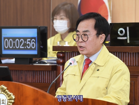 권영식 의원은 “행정부는 영등포 구민을 비롯한 지역민에게 도시계획법에 충족하지 못한 부분에 대하여 반성해야 한다”고 일침을 가하고 “80여 년 존치되어온 공원지정 취지에 맞게 공원을 개설할 것”을 강력히 촉구했다. 권영식 의원은 “영등포구민의 1인당 녹지면적은 서울시 25개 구 중 하위권에 있기에 존치된 녹지를 없애는 행정을 해서는 안 된다”라며 “이 사안은 지역의 생활환경과 주거·교통환경에 상당한 영향을 미치기 때문에 공청회를 열어 충분한 검토를 해야 하고 열람도 공고 기간과 숙지 시간을 충분히 준 다음 주민설명회가 개최되어야 한다”라고 강조했다. 권영식 의원은 녹지의 중요성을 강조하고 “영등포구는 공원 설치를 위해서 다각적인 방법을 강구하고 구민들의 의견에 충실하기”를 요구했다.