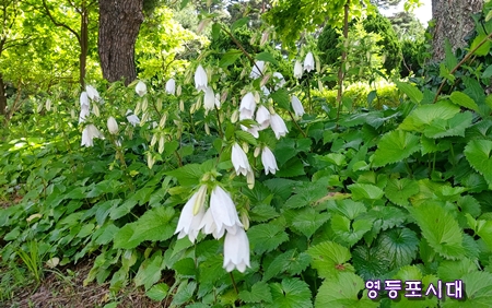 꽃은 차를 만들어 마신단다. 약초 구하러 간 동생을 기다리다 죽은 누나 옆에 핀 초롱불 닮은 꽃, 마로니에 큰 줄기 아래 한 무리 피어있다. 지나치면 들꽃이 슬픈 이야기를 지닌 꽃이 된다. 감사와 성실을 가슴에 품은 꽃, 초롱꽃이다.