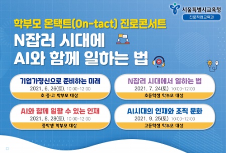 서울특별시교육청은 6월부터 9월까지 월 1회 학부모 영상 대면(온택드,Ontact) 진로콘서트를 운영한다.