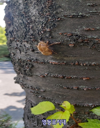 날개를 달고 빠져나간 매미 껍질이 붙어있다. 오년을 땅속에서 자라서 한 달을 살다 갈 삶의 우화가 고스란히 남은 흔적이다. 종족보전을 위한 시끄러움은 애처롭기까지 한데 그 흔적을 차마 어쩌지 못하다.