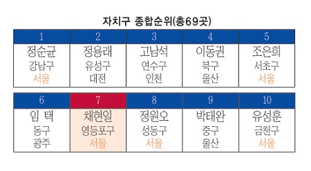 영등포구가 한국일보와 한국지방자치학회가 실시한 ‘2021 전국지방자치단체 평가’에서 전국 자치구 69곳 중 종합평가 7위에 올랐다. 또 행정서비스 분야는 종합 5위로 서울시 25개 자치구 중 강남, 서초에 이어 3위를 차지했다.