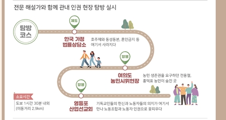 영등포구가 호주제와 동성동본 혼인 금지제도 폐지에 중요한 역할을 한 ‘한국가정법률상담소’에서부터 ‘여의도 농민시위 현장’, 노동조합과 노동 인권이 꽃 피었던 ‘영등포 산업선교회’까지 지역 내 인권수호의 역사와 항쟁의 정신이 녹아있는 영등포 인권 현장 탐방 프로그램 참가자를 모집한다.