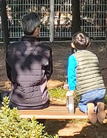 공원으로 놀러 온 모양입니다 요즘 다들 그렇게 살지요 몸이 예전 같지가 않을 겁니다. 앞서 뛰어가는 애와 두어 바퀴 돌면 다리보다 숨이 먼저 차기도 하지요 등 돌리고 잠시 쉬는 틈을 성이 덜 찬 손주 놈이 진득하니 앉아 있기야 하나요, 그래도, 지나고 보면 지금 이 시간이 가끔 되돌아볼 그리움임을 저 노인 양반도 알고 있을 겁니다. 재잘거리는 아이 목소리가 화양연화(花樣年華) 그 시절임을 저 할아버지는 알고도 남을 듯합니다.