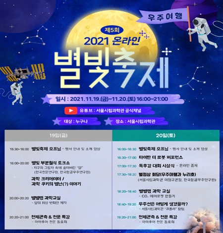 서울시립과학관 유튜브 채널에서 다양한 프로그램을 실시간으로 즐겨 볼 수 있는 ‘2021 온라인 별빛축제’가 열린다.