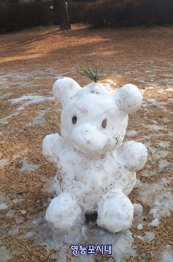 여름에는 상추를 길러 먹고 가을에는 배추와 무를 심었던 밭이었고 동네 벌판으로 이어졌었습니다. 눈이 내리면 신작로까지 온통 하얬고 잠에서 깨면 달려 나갔습니다 뒤따라오는 발자국이 기분 좋았습니다 아버지와 눈사람을 만들었습니다. 수염까지 달고 나면 서너 살 때 돌아가신 할아버지 모습이었습니다. 그때 저는 눈으로 빚은 할아버지는 아버지의 그리움이라고 생각했었습니다. 영등포공원 잔디마당에 눈으로 빚은 그리움이 서 있습니다 강아지 같기도 하고 곰 같기도 한데 빚은 사람의 그리움을 헤아려 봅니다. 눈으로 빚은 그리움은 다음날 햇볕에 사라졌습니다. 다시 눈이 많이 내린 날 세워질 다른 그리움은 아버지와 함께 빚은 눈사람도 함께 있으면 좋겠습니다.