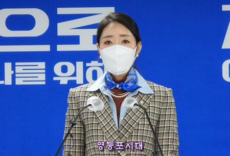 민주당 대선 선대위 강선우 대변인(왼쪽 사진)은 14일 대변이 브리핑에서 국민의힘 윤석열 후보의 부인 김건희 씨에 대한 허위경력 해명에 대해 일일이 반반하고 “윤석열 후보의 석고대죄”를 촉구했다.
