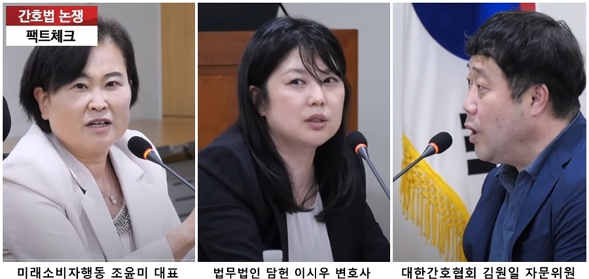 간호법이 국회 보건복지위를 통과한 이후로 가짜뉴스 확산이 이어지고 있는 가운데 열린 이번 토론회는 거짓 정보를 바로잡기 위해 열렸다. 3일 국회의원회관 제8간담회의실에서 열린 ‘간호법 왜 필요한가’ 간호법 팩트체크 토론회에는 미래소비자행동 조윤미 대표, 대한간호협회 김원일 자문위원, 법무법인 담헌 이시우 변호사 등 전문가들이 참여했다.