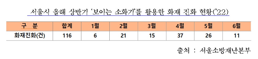 서울시 소방재난본부는 ‘보이는 소화기’의 2022년 상반기 성과를 분석하여 19일 발표했다.