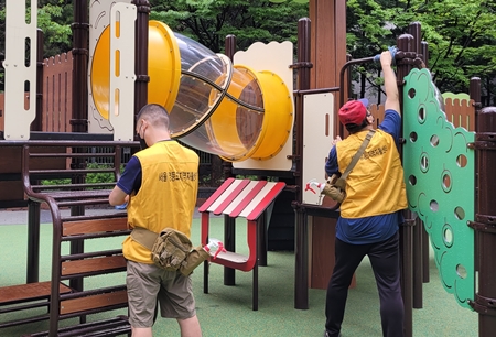 영등포지역자활센터가 영등포구청 푸른도시과와 협약을 체결하고 지역 내 공원과 놀이터 시설물에 대한 안전 검과 방역소독에 나선다.