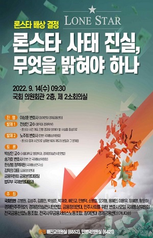 소송제기 10년 만에 나온 론스타의 국제 투자 분쟁 결론은 우리 정부의 2천 8백억 원대 배상책임으로 결론이 났다. 8월 31일 국제투자분쟁해결센터가 우리 정부에게 위와 같은 내용의 판정문을 보내왔다. 이에 정부는 판정문 중 주요 내용을 발췌해 보도자료를 통해 금융 부문 쟁점에서 일부 패소한 것을 공개했다. 이날 토론회는 이상훈 변호사 (참여연대 경제금융센터)의 사회로 진행되며 전성인 교수 (홍익대 경제학부)가 론스타 사건 개요, 진행 경과와 밝혀야 할 사실을 중심으로 발제에 나설 예정이다. 이어 노주희 변호사(민변 국제통상위원회)는 론스타 중재 사건으로 살펴본 ISDS 제도의 본질과 그 문제점을 들여다볼 예정이다. 토론에는 박상인 교수 (서울대학교 행정대학원, 경제정의실천시민연합), 송기호 변호사 (민변 전 국제통상위원장), 한상범 정책위원 (국제통상연구소), 김득의 대표 (금융정의연대) 그리고 금융위원회 론스타분쟁대응단과 법무부 국제분쟁대응과 관계자가 참여한다. 토론회는 국회의원 강병원, 김성주, 김종민, 박성준, 박재호, 배진교, 민병덕, 소병철, 오기형, 용혜인, 이용우, 장혜영, 황운하, 경제민주주의21, 경제정의실천시민연합, 금융정의연대, 전국금융산업노동조합, 전국사무금융서비스노동조합, 참여연대 경제금융센터가 공동으로 주최한다.