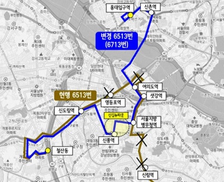 신길뉴타운 통과하는 시내버스 6713번 노선이 생긴다. 그동안 대중교통 이용에 불편을 겪어온 신길뉴타운 주민들에게 전해진 희소식이다.