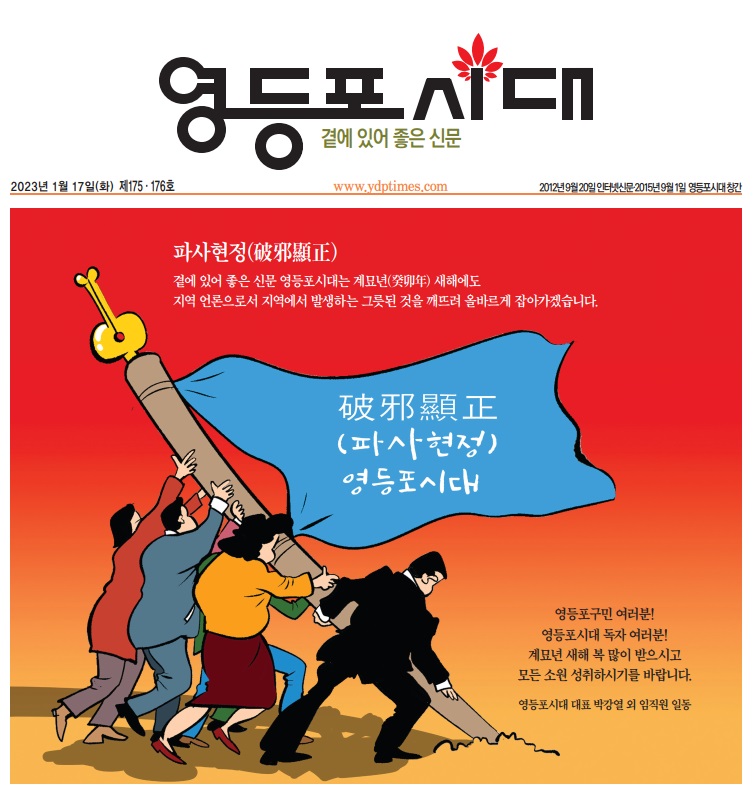 곁에 있어 좋은 신문 영등포시대는 계묘년(癸卯年) 새해에도 지역 언론으로서 지역에서 발생하는 그릇된 것을 깨뜨려 올바르게 잡아가겠습니다. 영등포구민 여러분!
