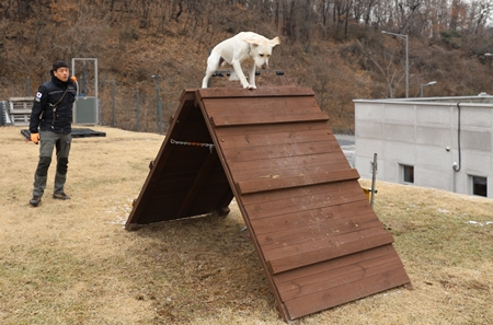 소방재난본부는 신임 119구조견은 2015년 12월 도입되어 인명구조 현장에서 임무를 완수하고 지난해 은퇴한 선임 119구조견 ‘비호’의 빈자리를 메운다고 25일 밝혔다. 소방재난본부 관계자는 “신임 119구조견은 구조대원이 진입할 수 없는 붕괴매몰 현장, 주야간 산악사고 현장에 투입되어 인명 탐색 임무를 수행하게 될 것”이라고 말했다. 이번에 119특수구조단의 새 식구로 들어온 ‘구구’는 119구조견 전문 훈련과정을 수료했으며 국가 공인 복합임무(산악+재난) 1급 자격을 취득했다. 소방청 중앙119구조본부에서 실시된 전문 훈련과정을 통해 산악수색 실습, 재난 붕괴 수색 실습 등 재난 현장 인명 검색에 필수적인 기술을 익혔다. 신임 구조견과 함께할 핸들러(구조대원) 1명도 전문 훈련과정에 참가하여 친화 교육을 받았다.