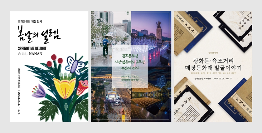 2일(목)부터 3월 17일까지는 광화문광장을 찾은 시민들이 직접 응모한 ‘광화문광장 사진·짧은영상 공모전’ 수상작 51편에 대한 전시가 열린다. 수상작 전시와 함께 ▲광화문광장의 매력 ▲광화문광장을 즐기는 방법 ▲광화문광장에 바라는 점 등 광화문광장에 대한 시민의 반응도 같이 볼 수 있다. 마지막으로 3월 17일(금)까지 고서(古書) 모양의 대형 구조물과 함께하는 ‘광화문·육조거리 매장문화재 발굴이야기’ 공유 전시가 열린다. 여장권 서울시 균형발전본부장은 “올 한해에도 광화문광장에 다채로운 문화행사를 선보여 광화문광장을 시민들이 사랑하는 도심 놀이터가 될 수 있도록 하겠다”라고 말했다.