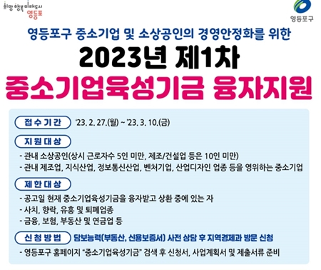 영등포구가 경영난을 겪고 있는 지역 내 업체 지원을 위해 2월 27일부터 3월 10일까지 상반기 융자지원 신청을 받는다는 반가운 소식이다.