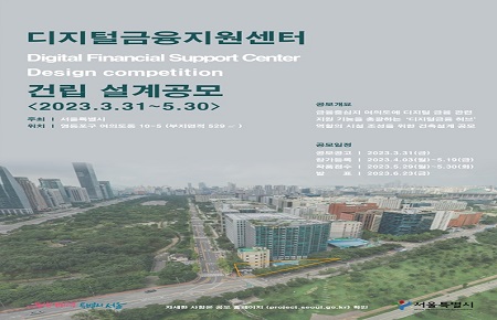 서울시는 ‘디지털금융지원센터’ 건립을 위해 3월 31일부터 5월 30일까지 61일간, 국내외 건축가들의 설계안을 공모한다고 4월 3일 밝혔다. 디지털금융지원센터 설계 공모 대상지는 영등포구 여의공원로 119, 여의도 공원 인근에 있으며, 대지면적 529㎡, 총사업비 약 294억을 투입해 연면적 4,463㎡ 규모로 건립될 예정이다. 디지털금융지원센터는 디지털금융 지원 기능을 총괄하는 ‘디지털금융 허브’ 역할로서 디지털금융 인재 역량강화, 핀테크기업 육성을 위한 협업 인프라와 스케일업 지원, 기존 지원시설 및 지역 간 유기적인 연계·결합을 위한 핵심 시설로 조성할 계획이다. 서울시는 심사품질 전문성 강화 및 투명성 강화를 위해 설계 공모 제도를 개선한다. 심사위원 사전간담회를 공모 공고 전·후 2회로 늘리고 심사 전 과정을 공개한다. 서울시는 2019년 최초 종이없는 ‘디지털 공모·심사’의 전환으로 시민들에게 열린 공개심사 방식을 적용해왔으며, 공정하고 합리적인 설계 공모 제도 정착을 위해 꾸준히 노력하고 있다. ‘디지털금융지원센터’ 건립 설계 공모에 참여를 희망하는 업체는 2023년 5월 30일까지 서울시 설계 공모 누리집을 통해 참가 등록을 할 수 있다. 참여 등록 업체를 대상으로 2023년 4월 6일에 현장 설명회를 실시하고, 2023. 5. 30(화)까지 설계안 접수, 이후 기술 검토와 두 차례의 작품심사를 거쳐 6월 23에 최종 당선작을 발표할 예정이다. 국내·외 건축사는 모두 공모에 참여할 수 있으며 총 3인까지 공동으로 응모할 수 있다. 다만, 외국 건축사 자격만 있는 경우는 국내 건축사와 공동으로 참여해야 한다. 공모일정, 설계지침, 참가 등록 방법 및 향후 일정 등 더욱 자세한 사항은 서울시 설계공모 누리집에서 확인할 수 있다. 심사위원은 총 6명으로 예비 심사위원으로 한태희 건축사사무소 클라우드나인 대표를 선정했다. 홍선기 서울시 미래공간기획관은 “이번 설계공모를 통해 여의도에 국제금융도시 성장 기반 마련을 위한 시설 건립이 본격화됐다”며, “재능있고 창의적인 건축가들이 많이 참여하여 세계적으로 주목받는 디지털금융지원센터로 거듭나도록 최선을 다해 추진하겠다”고 말했다.