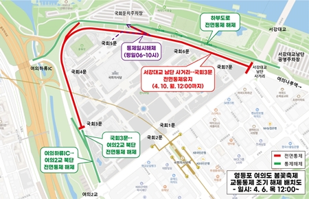 영등포구가 상춘객의 안전과 보호를 위해 차량을 통제했던 일부 구간에 대해 교통통제를 조기 해제한다.