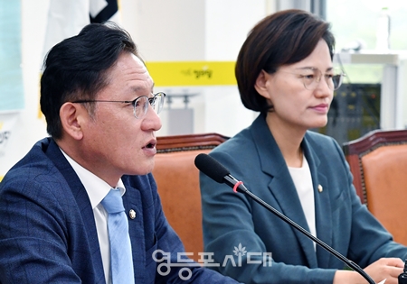 배진교 원내대표(왼쪽 사진)는 5월 30일 오전 국회에서 열린 의원총회 모두 발언에서 윤석열 대통령의 “양곡관리법, 간호법 이어 방송법, 노란봉투법 거부권 예상된다”라며 “법률 따른 권한인 거부권 행사를 막을 순 없으나 묻고 싶다”라며 이같이 따져 물었다. 배진교 원내대표는 “‘시행령 통치’, 제1야당 대표조차 만나지 않는 ‘독선의 통치’, 그리고 ‘거부권 통치’까지, 하나 같이 지속 불가능한 통치 방식. 여소야대 2년은 버리고, 내년 총선에 모든 걸 걸겠다는 꼴이다”라며 “통치가 아니라 도박이다. 국민도 없고, 통치도 없는 내전일 뿐이다”라고 목소리를 높였다. 배진교 원내대표는 “첫 국회 시정연설에서 ‘의회주의’를 말했다. 의회주의를 누구보다 먼저 실천해야 하는 것은 바로 대통령 본인이다”라며 “내전이 끝나지 않는 이유는 “이 내전을 내가 이겨서 멈추겠다”라는 착각과 만용 때문이다”라고 주장했다. 배진교 원내대표는 “억지스러운 거부권 행사는 간호법이 마지막이길 바란다”라며 “여당 역시 이성을 찾고, 내로남불의 무한루프를 벗어나길 바란다”라고 일침을 가했다.