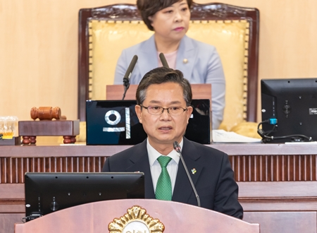 이어 시정 연설에 나선 최호권 구청장(왼쪽 사진)은 “2023년도 제1회 추가경정예산안 편성은 지역경제 활성화와 사회적 약자 지원, 구민의 안전과 재난·재해 안심 환경 구축 등 현안 사업 추진에 중점을 두었다”라고 설명하고 의원들의 이해와 협조를 부탁했다.