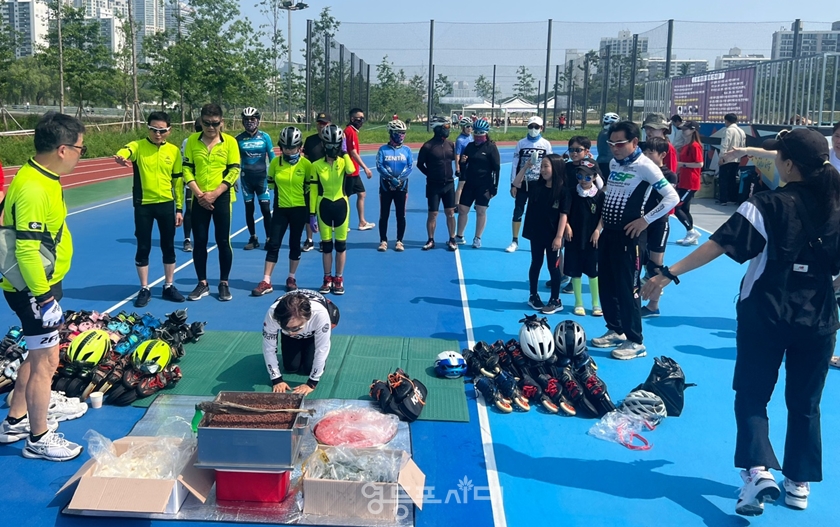 영등포구 롤러스포츠연맹은 이날 영등포구 롤러스포츠 동호인들의 안전한 롤러 타기를 기원했다.