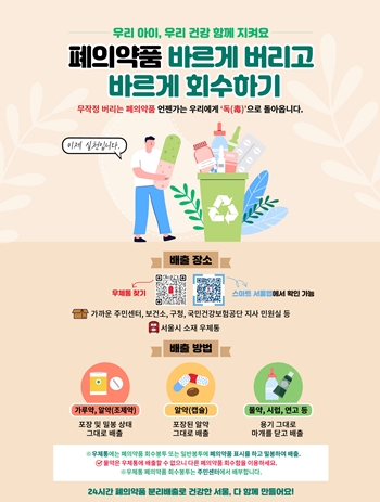 폐의약품은 유효기간이 지났거나 복용하지 않고 보유하고 있는 약 등으로 매립되거나 하수구로 버려지면 항생물질 등의 성분이 토양이나 지하수, 하천에 유입돼 환경오염을 유발하고, 슈퍼박테리아 등 내성균 확산으로 시민의 건강을 위협할 수 있다. 그러나 기존 수거함은 약물의 오남용 방지를 위해 잠금장치를 해야하는 등 관리가 필요해 설치 확대가 어려웠고, 공공기관 내 수거함은 근무시간 외에 이용할 수 없는 단점이 있었다. 서울시는 우정사업본부 등과 손잡고 7월부터 우체통을 활용 수거 장소를 확대하고 24시간 배출이 가능하도록 했다. 국민건강보험공단 지사 민원실 30개소 등에도 수거함을 추가 설치한다. 배출 방법은 간단하다. 폐의약품 전용 회수봉투 또는 일반 종이 봉투 겉면에 ‘폐의약품’을 표기하여 알약이나 가루약을 넣고 밀봉해 우체통에 넣으면 된다. 주의할 것은 물약은 기존 주민센터, 보건소 등의 폐의약품 수거함에 버려야 한다. 아울러 이번 업무협약을 계기로 환경재단 등과 함께 올바른 폐의약품 분리배출 문화 정착을 위한 캠페인을 진행할 계획이다. 또한, 환경‧사회‧투명 경영(ESG)을 실천하고 있는 민간기업과도 협업체계를 구축해 수거장소를 확대하고 대시민 홍보로 시민참여를 확대할 수 있을 것으로 기대하고 있다. 폐의약품도 분리배출 해야 한다는 시민 인식 확립으로 우리 아이, 우리 시민 건강을 지킬수 있도록 할 예정이다. 이인근 서울시 기후환경본부장은 “24시간 폐의약품 분리배출로 건강한 서울을 시민과 함께 만들 수 있는 계기가 되도록 하겠다”라며 “시민 여러분께서는 다소 번거롭더라도 집 주변 우체통이나 주민센터 폐의약품 수거함 등에 분리배출 해주실 것을 당부드린다”라고 말했다.