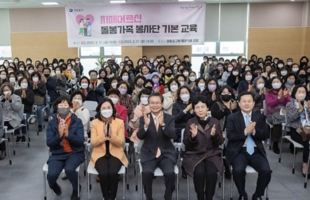 영등포구(구청장 최호권)가 26일, “치매 어르신 돌봄 가족 봉사에 참여하고 있는 100여 명의 봉사자와 함께 극장을 찾아 영화를 관람하고, 소통의 시간을 갖는다”라고 밝혔다. 치매 어르신 돌봄 가족 봉사는 자원봉사자가 치매 어르신 가정에 방문해 가족을 대신해 어르신을 돌보고, 가족들이 휴식을 가질 수 있도록 지원하는 영등포형 어르신 복지 사업이다. 현재 696명의 봉사자가 치매 대응과 자원봉사 기본 교육을 마치고 어르신을 찾아가 말벗 친구 되기, 식사 지원, 산책이나 외출 동행 등 맞춤형 통합돌봄을 제공하고 있다. 영화 관람 후에는 자유로운 분위기에서 봉사자들과 최 구청장이 함께 인사를 나누며, 봉사의 의미를 되짚는 의미 있는 시간도 갖는다. 영등포구 관계자는 “그동안 봉사에 참여하느라 문화를 접하지 못했던 분들께 여가와 문화생활을 즐길 기회를 제공하기 위해 영화감상 자리를 마련했다”라며 “봉사자들 간 화합과 친목의 시간을 마련함으로써 치매 어르신 돌봄 봉사가 더욱 활성화되기를 기대한다”라고 밝혔다. 최호권 영등포구청장은 치매 어르신과 돌봄 가족들의 든든한 위로와 지지가 되어 드리는 봉사단원들께 감사의 인사를 전하고 “치매환자와 돌봄 가족이 삶의 활력을 되찾을 수 있도록, 영등포구가 어르신을 내 부모처럼 모시며 통합돌봄 구축에 앞장서겠다”라고 밝혔다.