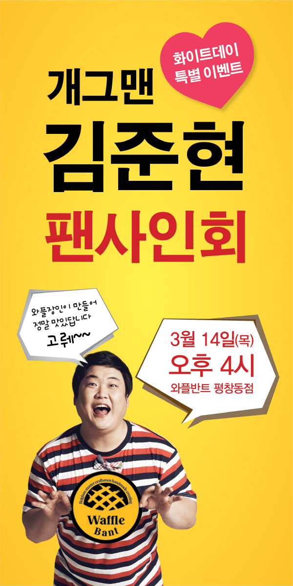 오는 14일 화이트데이날 평창동점 매장에서 개그콘서트 인기 개그맨 ‘김주현’의 팬 사인회를 진행한다.