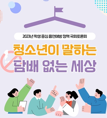 신종담배의 출현과 청소년을 대상으로 한 담배 마케팅에 대한 강력하고 전략적인 대응에 대한 필요성을 반영하여 학교 흡연 예방 정책의 현안과 주요 쟁점을 점검하는 ‘학생 중심 흡연 예방 정책 국회 토론회’가 개최된다.
