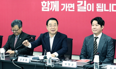 국민의힘 제22대 국회의원 후보자 공천관리위원회(위원장 정영환,왼쪽 사진 가운데)는 2월 14일 여의도 당사에서 회의를 열고 서울 19인, 광주 5인, 제주 1인 등 총 25명의 지역구 단수 공천자를 발표했다.