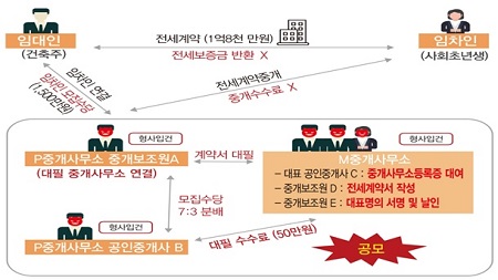 이번에 적발된 중개업자들은 주로 취준생‧사회초년생 등 부동산 계약 경험이 적은 청년들이 많이 찾는 온라인 부동산정보 카페와 블로그 등에 가짜 전세 매물을 올리거나 ‘입주 청소‧이사비 지원’, ‘전세대출 이자 지원’, ‘중개수수료 무료’ 등의 문구로 피해자를 유인했다. 이후 시세를 알기 어려운 신축 빌라나 세입자가 잘 구해지지 않던 빌라 등을 높은 가격에 계약하도록 유도하는 방식으로 피해를 확산시켰다.