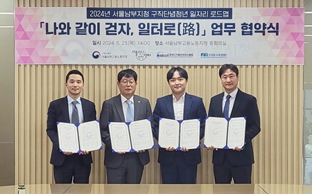 고용노동부 서울 남부지청(지청장 김승환)이 구직 단념 청년 일자리 로드맵 ‘나와 같이 걷자, 일터로(路) 업무협약을 체결하고 구직 단념 청년 지원 사업을 본격적으로 추진한다.