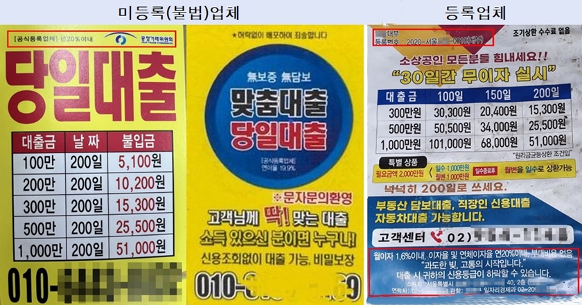 이와 함께 전통시장 내 불법대부 광고 전단지, 현수막 등을 수거해 ‘대포킬러시스템’으로 불법 대부 광고에 사용된 전화번호를 원천 차단할 계획이다. 피해상담·구제는 일차적으로 전문상담가들이 채무자가 제출한 금융거래 내역을 토대로 이자율 확인 후 대출원리금을 알려주고, 만일 채무자가 불법대부업자에게 대출 원리금을 초과 지급했다면 ‘부당이득금 반환’이나 ‘잔존 채무 포기’ 등 당사자 간 합의를 유도해 채권·채무 관계를 종결하는 방식으로 진행된다. 김경미 공정경제과장은 “불법대부업 피해를 당해도 신분 노출을 우려해 피해 사실을 숨기거나 법률에 대한 이해 부족으로 피해 사실 자체를 인지하지 못하는 경우도 많다”라며, “집중 신고 기간 운영 이후에도 지속적인 현장 단속을 통해 불법대부업으로 인한 서민들의 고통과 소비자 피해를 최소화하겠다”라고 말했다.