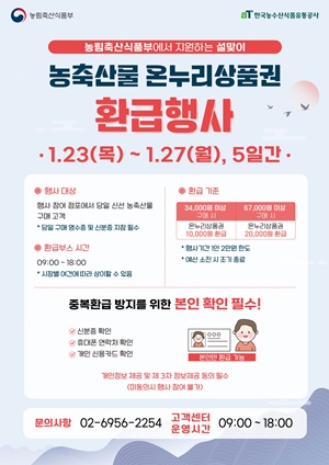 1월 23~27일, 구매금액에 따라 최대 2만원까지 환급