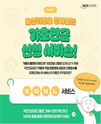 국민연금공단은 4월 11일까지 더 많은 국민이 기초연금 혜택을 받는 데 도움이 되는 서비스를 알리기 위해 ‘기초연금 초성퀴즈 행사’를 진행한다고 3월 31일 밝혔다.