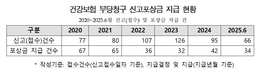 올해 상반기 건강보험 신고포상금 지급, 지난해보다 두 배 이상 많아