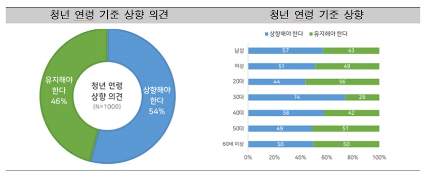 청년 연령 상향 찬반에 조사대상 30대의 74%가 찬성!