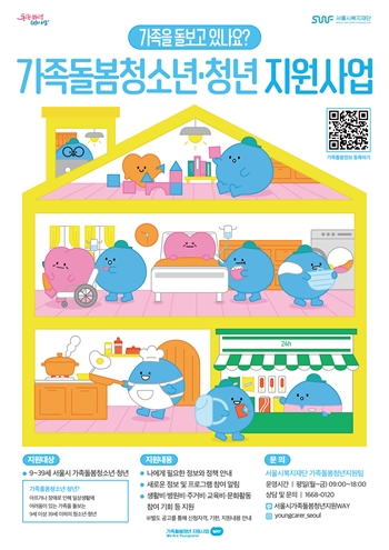 가족을 돌보느라 자신의 삶을 돌보기 어려운 가족 돌봄 청소년·청년을 위한 지원 정책으로 지역 내에 거주하고 기준중위소득이 150% 이하(2인 가구 기준 월 소득 약 629만 원)의 가족 돌봄 청소년·청년을 대상으로 5월부터 12월까지 8개월간 월 30만 원을 지원한다. 지원금은 자기 계발, 건강관리, 상담·치료, 문화 활동 등 개인의 삶의 질을 높이기 위한 활동과 가족 돌봄 부담을 줄이기 위한 비용으로 사용할 수 있으며, 돌봄 대상자가 중증장애인 또는 중증 난치질환자이거나 2인 이상일 경우에는 월 40만원을 지원한다. 다만 지원 대상자가 기초생활수급자와 차상위계층일 때 자기 돌봄비 지원 신청을 할수 없다. 또한 서울시 청년수당, 디딤돌 소득, 희망두배 청년통장 등 유사 사업 참여자는 지원 대상에서 제외된다. 사업 참여자는 2개월마다 돌봄 기록서를 제출해야 한다. 기록서에는 자기 돌봄비 사용 내용과 사업 기간에 가족 돌봄 부담의 변화 과정을 작성하면 된다. 신청은 오는 16일부터 31일까지 서울복지포털을 통해 온라인으로 접수할 수 있으며, 신청 시 가족 돌봄 청소년‧청년 등록을 완료해야 한다. 특히 만 9~13세의 가족 돌봄 청소년은 온라인 신청이 불가해 필요 서류를 가지고 법정대리인과 함께 구청 복지정책과를 방문해 신청해야 한다.