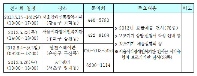 대상은 서울지역 거주 장애인, 국가유공자로서 희망자로부터 정보통신보조기기 신청을 받아 서류심사, 방문상담과 전문가의 심의를 거쳐 600여명의 보급대상자를 선정하게 되며 선정결과는 8월 9일경 발표할 예정이다. 장애인들의 신청접수 접근성 향상을 위해 자치구청에 접수창구 마련 정보통신보조기기 지원을 희망하면 주소지 관할 구청의 정보화부서에 방문・우편으로 신청서를 제출하거나, 보조기기 홈페이지(www.at4u.or.kr)를 통해 온라인으로 신청하면 된다. 서울시는 보급기기 제품가격의 80%를 지원하며 장애인 본인은 20%를 부담하게 되고, 특히 기초생활보장법상 수급권자와 차상위계층은 본인부담금 10%만 부담하면 된다. 보조기기 신청서 양식은 서울시 및 자치구 홈페이지와 정보통신보조기기 사이트(http://www.at4u.or.kr)에서 내려받을 수 있으며, 신청방법 등에 관한 자세한 문의는 전화상담(1588-2670)을 통해 안내받을 수 있다. 정보통신보조기기는 정보이용과 의사소통에 심각한 제약이 있는 장애인에게 컴퓨터, 인터넷 등을 통해 다양한 정보를 편리하게 사용할 수 있도록 보조해 주는 기기로써 정보화시대에 장애인의 사회참여 및 기회제공을 위한 필수장비이다. 이번에 보급되는 기기는 시각(38종), 지체․뇌병변(17종), 청각․언어(23종)등 총 78개 제품이며 특히 작년에 비해 9종이 늘어 장애인들이 자신에 맞는 보조기기를 신청할 수 있도록 하였다. 정보통신보조기기 전시회를 통한 장애인 맞춤 보조기기 신청 지원 금년에는 정보통신보조기기 전시회를 장애인복지관, 보조공학서비스센터, 체험활용관 등에서 실시하며 정보통신보조기기에 대한 제품상담, 기기체험, 신청의 원스톱 서비스를 받도록 진행한다. 보조기기 전시회 기간동안 보조기기 신청서 작성 상담 및 현장에서 신청서 접수를 병행하여 장애인의 신청접수 편의를 지원할 예정이다.